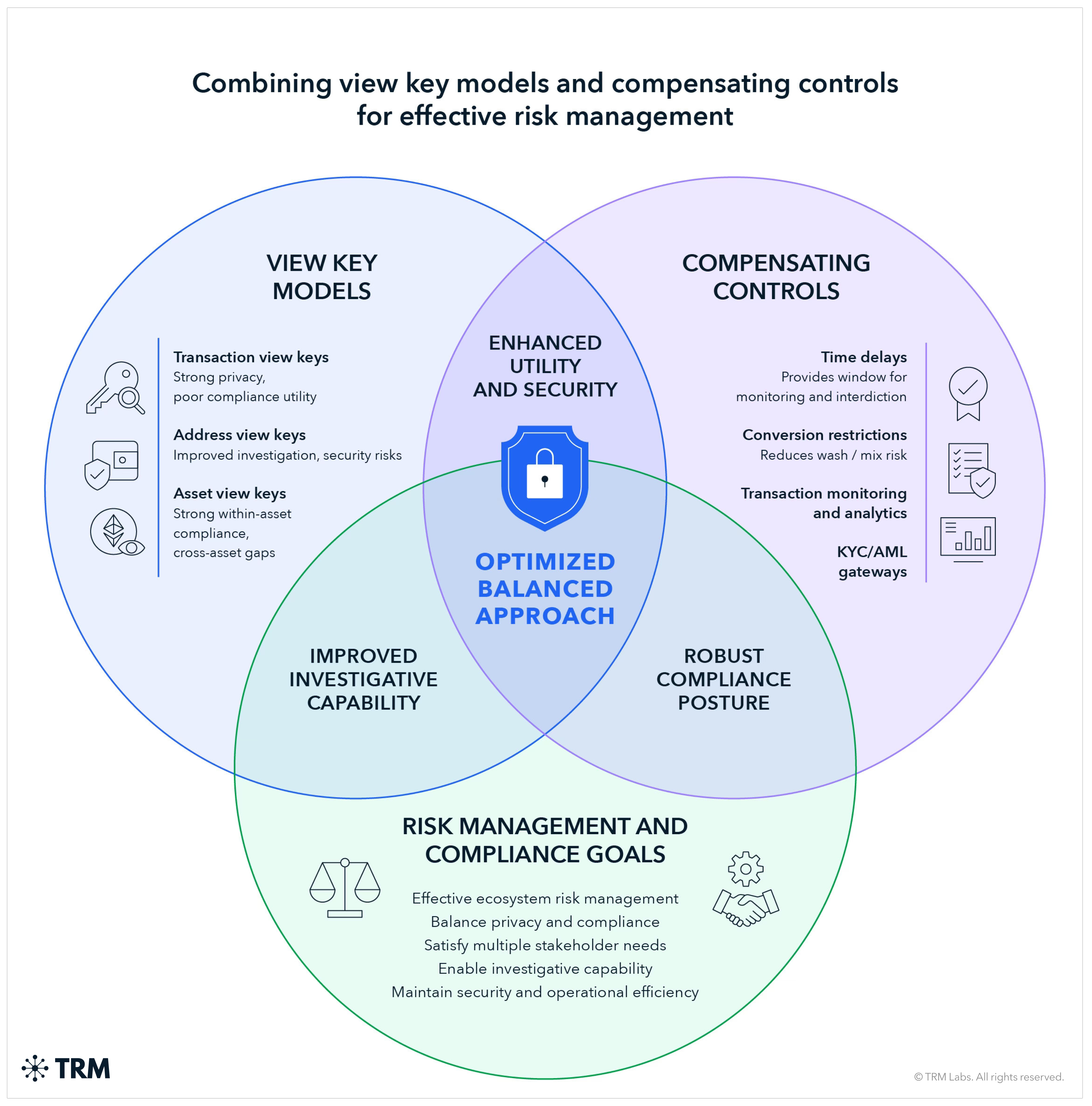 - Compensating controls vary significantly in compliance utility. Know Your Customer (KYC) on addresses provides attribution but creates data security and adoption tradeoffs. Time delays and velocity limits provide interdiction value but degrade market function.